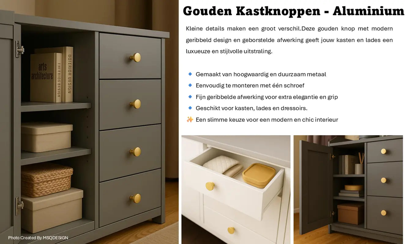 * Order the MSQDESIGN doorknobs in gold today and give your kitchen, bathroom or furniture a luxurious and timeless look!