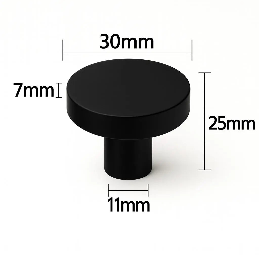 • Furniture knob black round / Furniture knobs black These beautiful cupboard knobs have a beautiful modern look and are an asset to your cupboards due to the beautiful finish. Because the Furniture Knobs are made of aluminum, they do not break during prolonged use. In addition, this material is stainless, making it also suitable for damp areas such as the bathroom and kitchen. Can be used for all types of cabinets such as kitchen cabinets, bathroom cabinets, furniture-like cabinets, kitchen handles, furniture handles, furniture fittings, handles, door handles, bathroom handles, cabinet knobs, kitchen cabinet handles and drawer pulls and also suitable for Ikea cabinets and kitchen.